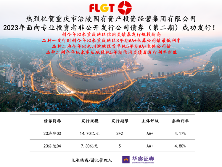 2023年7月14 日,重慶市涪陵國有資產(chǎn)投資經(jīng)營集團(tuán)有限公司成功發(fā)行 2023年非公開發(fā)行公司債券(第二期)。本期債券發(fā)行規(guī)模 22億元,為今年以來全國第六單總發(fā)行規(guī)模超20億的AA+主體公司債,為今年以來重慶地區(qū)最大發(fā)行規(guī)模的信用類債券。
