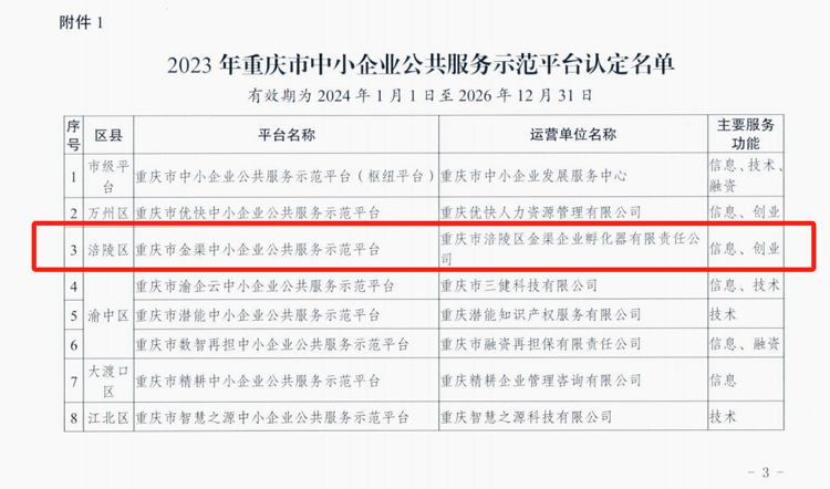 近日,市經(jīng)信委發(fā)布《關(guān)于公布2023年重慶市中小企業(yè)公共服務(wù)示范平臺認(rèn)定名單的通知》文件,金渠孵化器運(yùn)營的重慶市金渠中小企業(yè)公共服務(wù)示范平臺順利通過2023年重慶市中小企業(yè)公共服務(wù)示范平臺復(fù)核,有效期3年(2024年1月1日至2026年12月31日),此次復(fù)核充分肯定了重慶市金渠中小企業(yè)公共服務(wù)示范平臺的信息服務(wù)和創(chuàng)業(yè)服務(wù)功能以及助推區(qū)域內(nèi)中小企業(yè)發(fā)展新動(dòng)力作用。