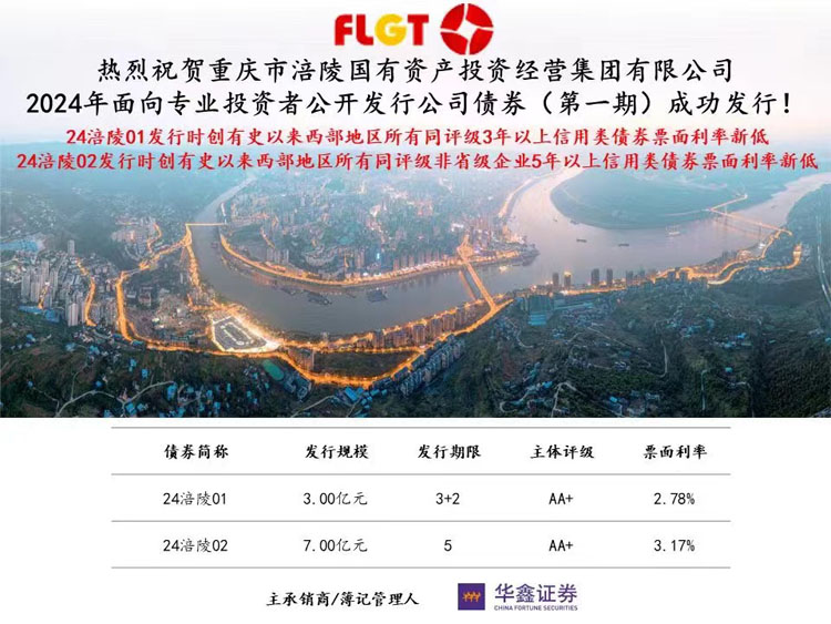 本期債券發(fā)行規(guī)模10億元,品種一“24涪陵01”發(fā)行規(guī)模3億元,票面利率2.78%/年,創(chuàng)有史以來西部地區(qū)所有同評級3年以上信用類債券票面利率新低;品種二“24涪陵02”發(fā)行規(guī)模7億元,票面利率3.17%/年,創(chuàng)有史以來西部地區(qū)所有同評級非省級企業(yè)5年以上信用類債券票面利率新低。