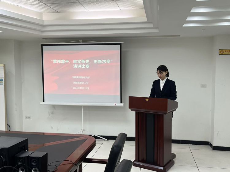 為進(jìn)一步激發(fā)員工的工作熱情和擔(dān)當(dāng)精神,提升團(tuán)隊(duì)凝聚力和戰(zhàn)斗力,不斷推動(dòng)公司高質(zhì)量發(fā)展。近日,高速路公司舉辦了“敢闖敢干、唯實(shí)爭(zhēng)先、創(chuàng)新求變”主題演講比賽。選手們結(jié)合工作崗位實(shí)際,從“數(shù)字化征地拆遷的工作思路”、“黨員先鋒隊(duì)奮戰(zhàn)在施工一線”等主題開(kāi)展演講,展現(xiàn)出了新時(shí)代國(guó)有企業(yè)員工的敢于拼搏、實(shí)干奮進(jìn)、勇于創(chuàng)新的精神風(fēng)貌。