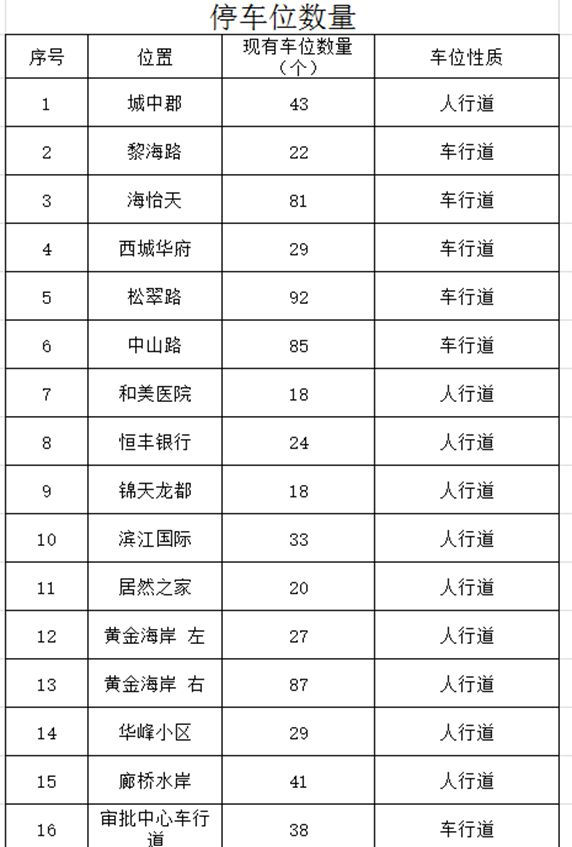 四環(huán)路沿線、興華西路沿線、濱江路沿線、白鶴路沿線、稻香路沿線、中山路沿線、順江大道沿線等由政府統(tǒng)一規(guī)劃的全部臨時(shí)占道停車位1055個(gè),其中重點(diǎn)路段562個(gè),一般路段493個(gè)。