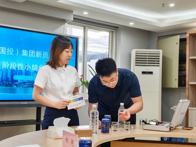 會上,新員工們分組進行了水質(zhì)電解、導(dǎo)電、PH檢測實驗展示,各調(diào)研小組代表進行了調(diào)研成果分享,參訓(xùn)人員分享了近期培訓(xùn)收獲,阿依達公司帶隊領(lǐng)導(dǎo)分別對8名新員工的表現(xiàn)進行了客觀評價。最后,集團公司黨委委員、副總經(jīng)理張茺作總結(jié)發(fā)言,充分肯定了新員工培訓(xùn)階段性成果,殷切地對新員工提出“兩點希望和三個期許”:希望全體新員工要充分理解集團黨委開展市場化培訓(xùn)的動機,希望下階段培訓(xùn)中充分展現(xiàn)自己體現(xiàn)培訓(xùn)的真正成果;新員工要提升主動工作意識,保持空杯心態(tài),把簡單的事情重復(fù)做,把重復(fù)的事情認(rèn)真做;要不斷強化學(xué)習(xí)與思考,在學(xué)習(xí)中善于思考問題,在思考問題中感悟,精進式成長;要提升處理應(yīng)急事件的能力,快速熟悉工作目標(biāo)、業(yè)務(wù)知識及團隊協(xié)作方式,在實戰(zhàn)中長本事。