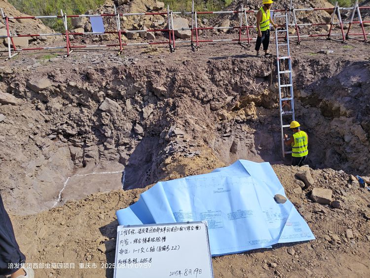 涪發(fā)集團西部蟲草園項目(一期)綜合樓已于8月12日由總監(jiān)理工程師下發(fā)開工令正式開始施工,目前現場已完成25個獨立基礎(共36個)的開挖,為保證工程質量和順利進入下一道施工工序,按照建設管理程序施工單位自檢合格后由區(qū)建委質監(jiān)站、各參建單位共同對基礎基坑進行聯(lián)合驗收,經各方現場確認,基礎基坑質量符合設計要求,同意通過驗收。