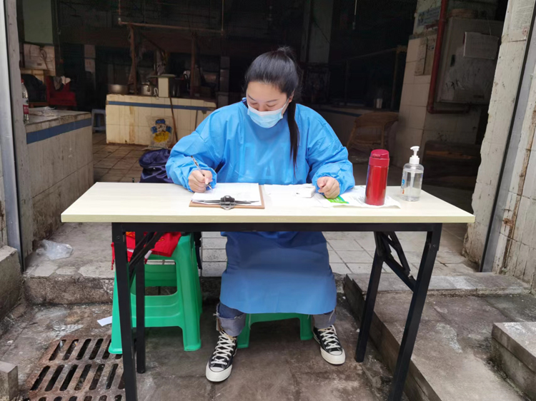 這個周末過得很特殊,程杰作為國融典當公司業(yè)務(wù)部的一名項目經(jīng)理,從12日開始下沉到社區(qū)開展志愿者服務(wù),便一直負責核酸檢測信息的錄入。“我現(xiàn)在練成一個本事:白天不喝水、不上廁所,從早到晚保持一個坐姿,一個動作一天可以重復幾千次。”程杰笑著說到。在完成1623人信息采集服務(wù)后,晚上8點鐘回到家,六歲的兒子正等著她檢查作業(yè)、上傳作業(yè)、打卡簽到。11點,看著熟睡的兒子,轉(zhuǎn)身悄然回到臥室,開始今天還未完成的工作,打完最后一個字,已經(jīng)凌晨1點39。調(diào)好早上6點半的手機鬧鐘,明天又是新的一天,又是一場硬仗。