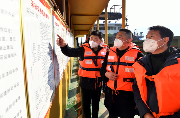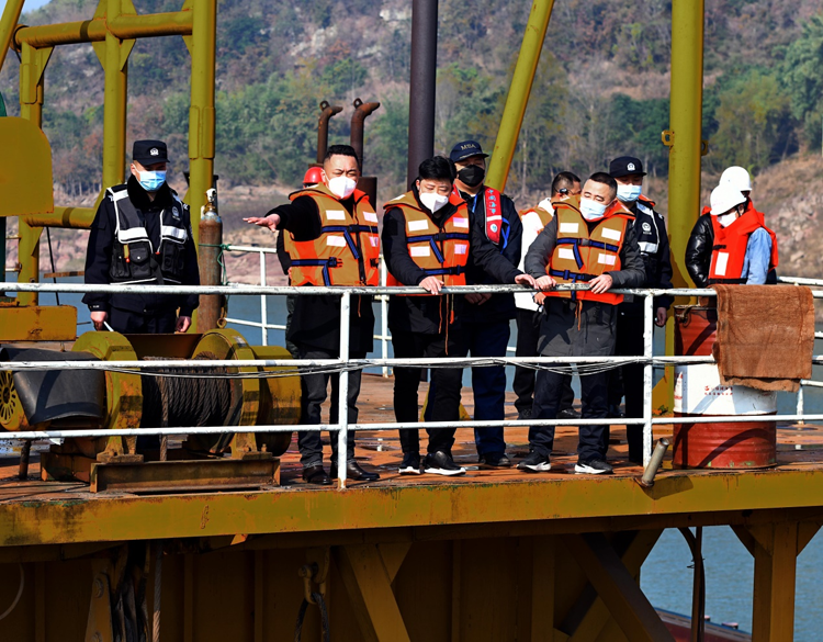 2022年12月30日上午,區(qū)紀(jì)委監(jiān)委、區(qū)水利局、區(qū)公安局、長(zhǎng)江涪陵海事處、長(zhǎng)江涪陵航道處、長(zhǎng)航公安涪陵派出所、國(guó)投集團(tuán)組成聯(lián)合檢查組對(duì)江正公司正在實(shí)施開(kāi)采的打梆沱河道采砂區(qū)進(jìn)行檢查指導(dǎo)。檢查組由區(qū)紀(jì)委監(jiān)委駐農(nóng)委紀(jì)檢監(jiān)察組組長(zhǎng)羅云同志帶隊(duì),國(guó)投集團(tuán)副總經(jīng)理張茺同志作為檢查組成員參加檢查。